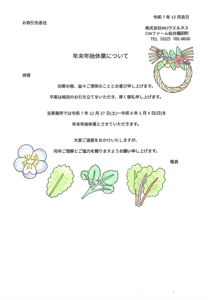 下記の期間を年末年始のお休み とさせていただきます🌱
